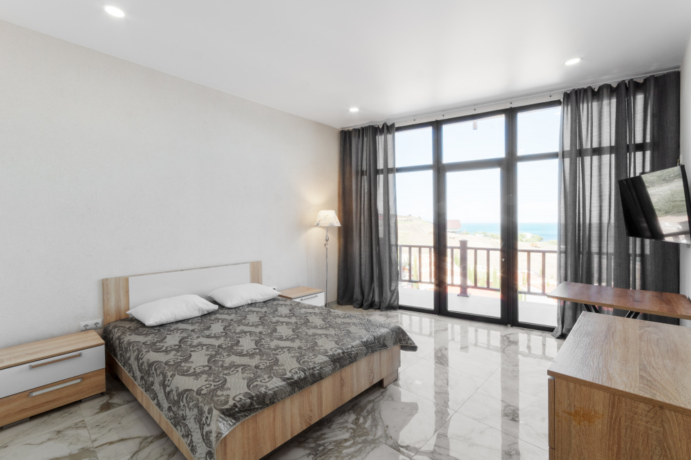 Наш «Стандарт» — это не просто комната, а ваше личное пространство для релакса. Дизайн в светлых, воздушных тонах визуально расширяет пространство, наполняя его крымским солнцем и ощущением легкости. Панорамное окно становится живой картиной, которая меняется в течение дня.