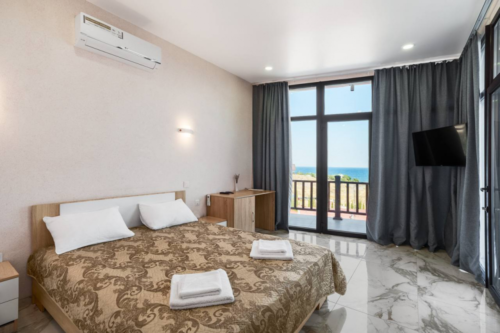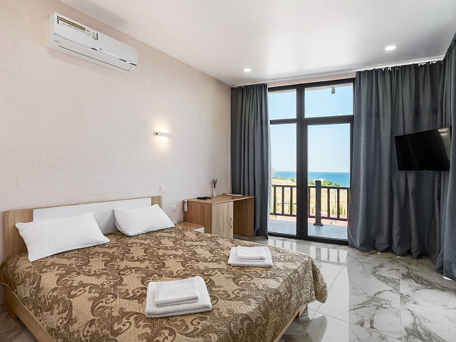 Угловой панорамный номер с видом на Чёрное море в Алуште с двухместным размещением
