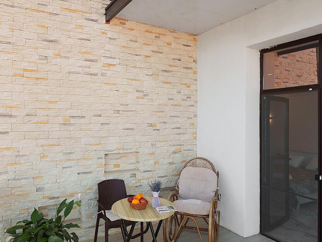 Уникальное угловое расположение номера открывает обзор на 180 градусов, даруя вам больше света, простора и возможность с одного ракурса насладиться и морским пейзажем, и уютом Алушты. Это идеальный выбор для романтического отпуска или для тех, кто ищет уединения и гармонии.