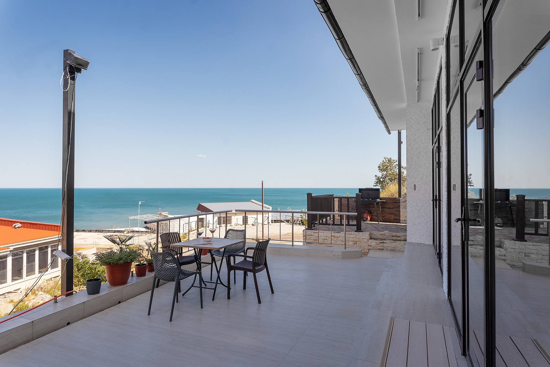 Наши номера – это идеальное решение для семьи или небольшой компании. В них есть всё необходимое для комфортного отдыха. Много света, роскошный вид на море из панорамного окна и приятный интерьер. Большая терраса отлично подходит для душевного общения.